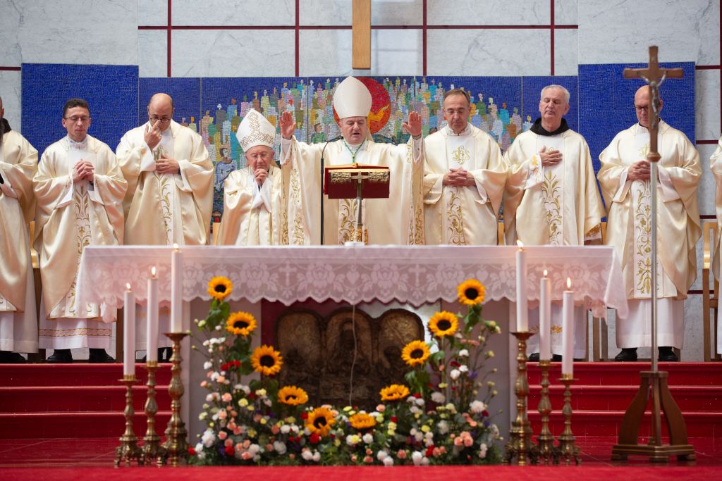 Uz biskupa Petra i oko četrdeset svećenika u koncelebraciji su sudjelovali naš provincijal fra Jozo Grbeš, apostolski vizitator za Župu Međugorje msgr. Aldo Cavalli te imenovani biskup kotorski msgr. fra Mladen Vukšić.