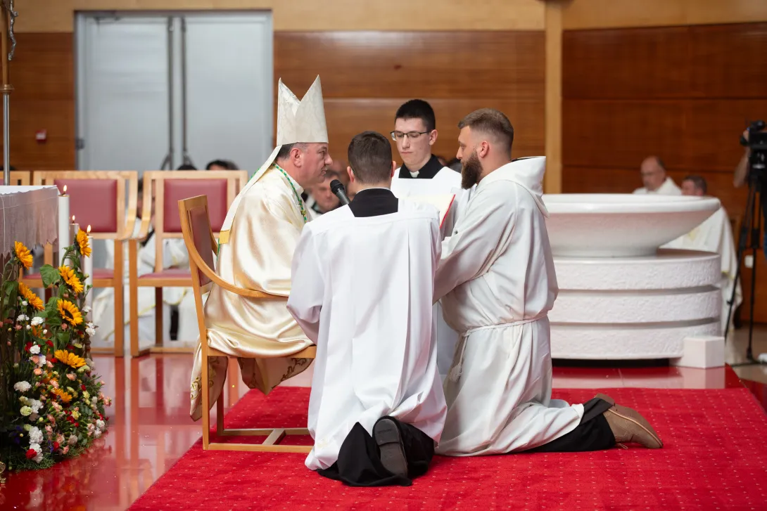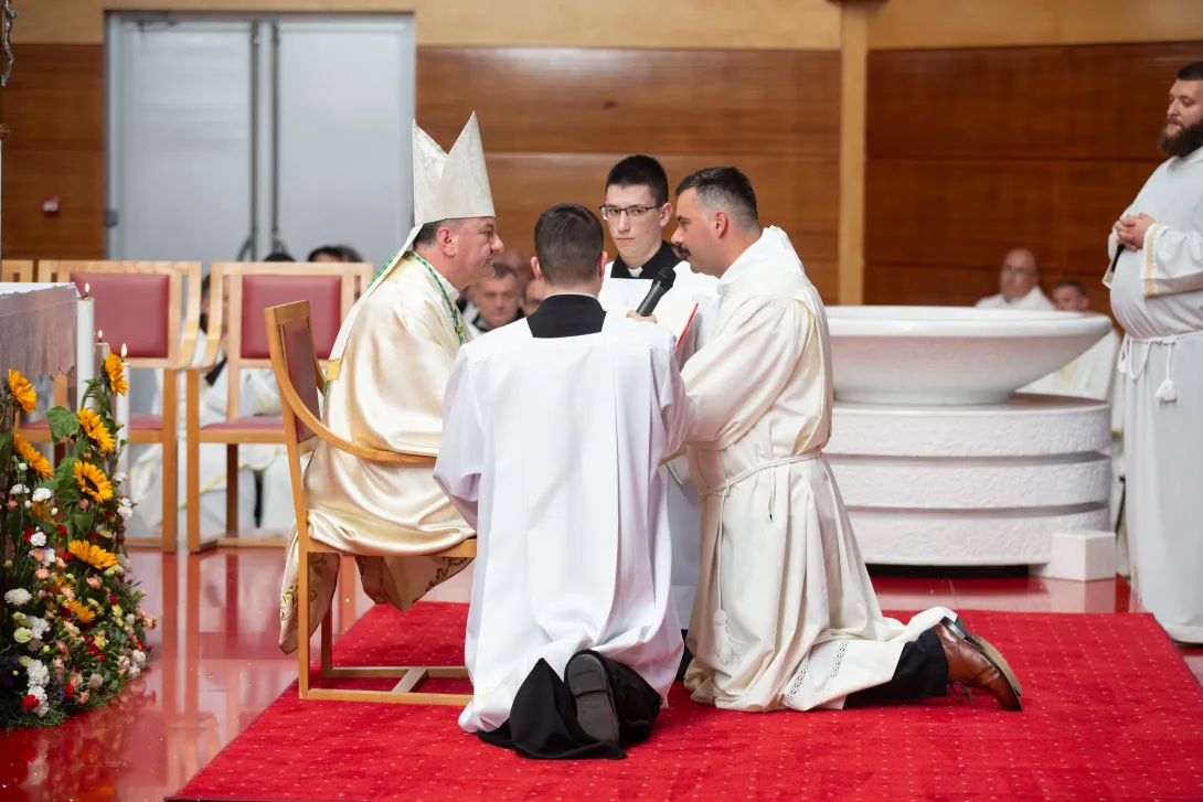 U svojoj homiliji biskup Petar novim đakonima naglasio je: „Vjerujem da vam je već kroz proces formacije postalo toliko jasno da znate i prihvaćate činjenicu da se u svemu onome što ćete od danas raditi ne radi o plaći jer ono što prihvaćate nije posao nego poziv i načelo života u kojem radno vrijeme traje dvadeset i četiri sata. Za nekoliko trenutaka javno ćete izreći svoju odluku da ste spremi preuzeti službu đakonata i biti posvećeni za službu Crkve po polaganju mojih ruku i dara Duha Svetoga. Po primanju svetoga reda ne postajete privatni obrtnici nego postajete duboko otajstveno povezani s Kristom koji vas je pozvao, s biskupom koji vam je podijelio ovaj sveti red, s prezbiterijem na kojemu ćete djelovati kao i s Božjim narodom kojemu ćete biti poslani. Nastojte iz dana u dan rasti u ovoj povezanosti jer bez njegovanja te povezanosti nećete biti sposobni u potpunosti živjeti svoj đakonat i ako Bog da svoje svećeništvo.”