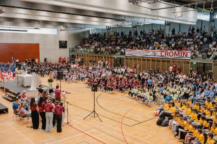 U ponedjeljak 9. lipnja, na duhovski ponedjeljak, održan je 21. po redu susret ministranata i dječjih zborova – popularni CROMIN. Već treću godinu zaredom domaćin ovoga svake pohvale vrijednoga susreta bila je HKM Zürich, kojoj valja odati osobitu počast što je po tko zna koji put pokazala svoju snagu i umijeće u organiziranju ovoga ne tako jednostavnoga događaja. Oko 150 vrijednih domaćih volontera pojačanih i nekolicinom njih iz drugih misija već od 7.00 sati počeli su pripremati ogromno zdanje KUSPO – GRIES u Volketswilu: jedni veliku dvoranu za slavlje sv. mise i nastup dječjih zborova; majstori roštilja istovremeno su, pod vrućim šatorima, pripremali 1500 porcija ćevapa i 800 porcija hrenovki za tjelesnu okrjepu; vrijedne žene su u svojim domovima pripremile mnoštvo ukusnih kolača da bi se vjernici tijekom dana mogli zasladiti te su, uz kolače neumorno pravile i prodavale kavu i druga pića; mlađi volonteri su se, razumljivo, brinuli o prodaji sladoleda; volonteri zaduženi za sportska natjecanja marljivo su pripremali nogometne terene, njih 9, za nogometna natjecanja, trčanje i skakanje u vreći. A što tek reći za naše framaše iz Züricha koji su, nakon što su pomogli postaviti dvoranu, radosno dočekivali mnoštvo djece nudeći im skromni ali slatki doručak u obliku slatkih kiflica i čokoladnog mlijeka, da bi na kraju pomogli svim sudionicima podijeliti prigodne medalje? Već od 9.00 sati počeli su pristizati sudionici CROMINA, što je za volontere zadužene za prometnu regulaciju, u pratnji onih profesionalnih kadeta, značilo zasukati rukave i boriti se kako bi svaki motocikl, automobil i autobus našao svoje prigodno i sigurno mjesto. Ove godine je bilo prijavljeno oko 700 djece iz 9 misija naših HKM u Švicarskoj. Uz djecu i mlade koji su došli privatnim aranžmanom, te kad se zbroji roditeljska pratnja i dolazak drugih ljudi dobre volje, koji u CROMINU prepoznaju dan koji budi posebnu radost i življenje lijepoga zajedništva koje uistinu odmara i dušu i tijelo, možemo reći da je na ovogodišnjem CROMINU sudjelovalo barem 2000 ljudi.