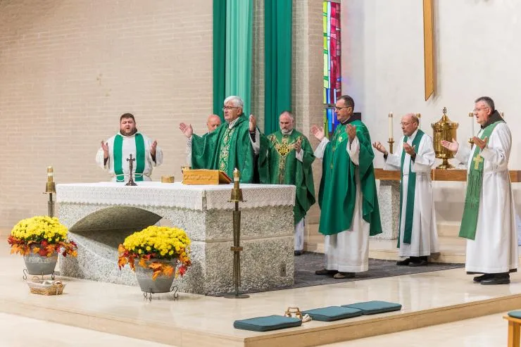 Svečanu svetu misu predslavio je biskup banjalučki mons. Željko Majić koji je ovih dana boravio u posjeti hrvatskim zajednicama u SAD-u. S njim su suslavili fra Nikola Pašalić, kustod hrvatskih franjevaca i negdašnji misionar u ovoj misiji, gore spomenuti fra Marko Puljić, danas župnik Hrvatske misije bl. Stepinca u Chicagu, fra Antonio Musa, župnik Hrvatske župe sv. Jeronima u Chicagu, lokalni župnik vlč. Troy Nevins, te vlč. Peter Damian i vlč. Jim Celich iz lokalne biskupije.