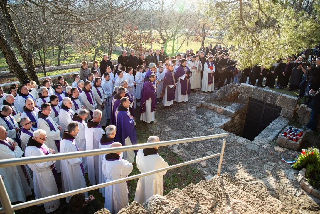Okupili smo se večeras oko svetoga oltara i euharistijskog Krista da pred oltar donesemo svoju sažalnicu za pobijenu redovničku braću i naš stradali puk, a da pritom Kristu preporučimo njihove duše. Nižu se u našim mislima potresna sjećanja na pobijene, ali postranice i na one koji ih pogubiše. Bogu prinosimo i teretnu žrtvu šutnje koja je kroz prošla desetljeća silom okovala istinu o nemilom događaju, a ovu Provinciju smrtno ranjavala brojnim kazamatima. Dugo smo živjeli u tamnoj noći, gledali u zube strahu i ideološkom mraku. Jedino svjetlo nam bijaše Krist, kojem smo prinosili svoje žalosti i svoje nade.
