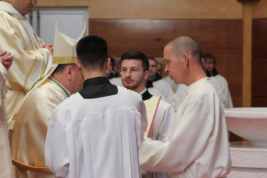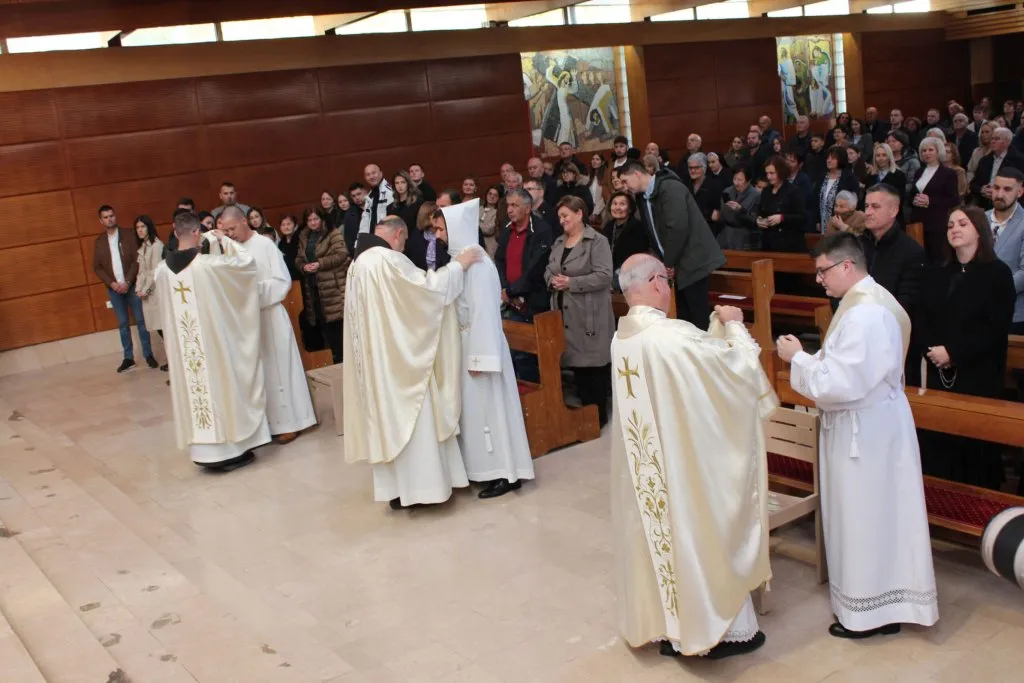 Dragi kandidati, Vaša će služba imati tri oblika koji odgovaraju trostrukoj Kristovoj službi: učiteljskoj, posvetiteljskoj i upraviteljskoj. Prvo, služit ćete Riječi Božjoj. Kao đakoni, naviještat ćete Evanđelje na misi, ne kao obični čitači, nego kao glasnici Radosne vijesti. Propovijedat ćete, katehizirati i poučavati. No, zapamtite: ne možete dati ono što nemate. Najprije morate biti sluge Riječi u vlastitom srcu, dopuštajući joj da preobrazi vas same prije nego je navijestite drugima. Jer ljudi danas ne traže samo propovjednike koji govore o Kristu, oni žele vidjeti Krista u vama. Vaše riječi dobit će snagu samo ako budu proizašle iz života oblikovanog molitvom, poniznošću i osobnim obraćenjem. Kad vjernici gledaju u vas, neka u vašem glasu, u vašem držanju, načinu na koji služite, prepoznaju sjaj Riječi koja je postala Tijelom u vašem životu. Tada vaše naviještanje neće biti samo prazan govor, nego živo svjedočanstvo i Riječ će kroz vas ponovno postati djelotvorna, živa i vjerodostojna. Drugo, služit ćete oltaru. Pomagat ćete biskupu i svećenicima u slavlju svetih otajstava. Pripremat ćete oltar, prinositi kalež i dijeliti svetu pričest, Onoga koji se učinio hranom za nas. Kakvu duboku poniznost to zahtijeva! Darivati Euharistiju znači doticati vrhunac Božje ljubavi koja se daruje. Kako piše sveti Toma Akvinski, u Euharistiji nam Bog ne daje samo svoje darove, nego samoga sebe.