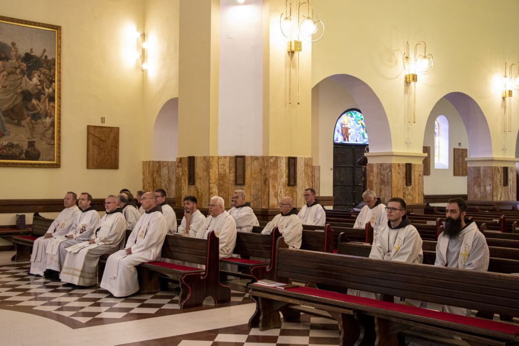 Nakon kratke pauze i mogućnosti za sakrament pomirenja provincijal fra Jozo Grbeš u zajedništvu sa svom braćom predslavio je svetu misu. Osvrćući se na život sv. Josipa Kupretinskoga u propovijedi je naglasio: Ne skrivaju li se tajne, kao i mudrost u malim posudama ovoga svijeta. Njihov život zahtjeva od nas život traženja i borbe s vlastitim egom… Što je to nepoznato, tajno što znaju samo mali? – Spasenje dolazi od malog, nježnog, ranjivog, teško primjetljivog. Bog koji je Stvoritelj svemira dolazi u malenosti, slabosti i tajanstvenosti. Bio je neuk (Josip Kupertinski), a ipak je Bog po njemu govorio. Isplati se uvijek provesti vrijeme s nepoznatima i onima koji nisu naša ekipa, naši pajdaši. Na kraju sv. mise provincijal je zahvalio svoj braći na dolasku te braći iz duvanjskog samostana na čelu s gvardijanom fra Božom Milićem na gostoprimstvu. Pomolivši se za svu našu pokojnu braću susret je završio zajedničkim objedom.