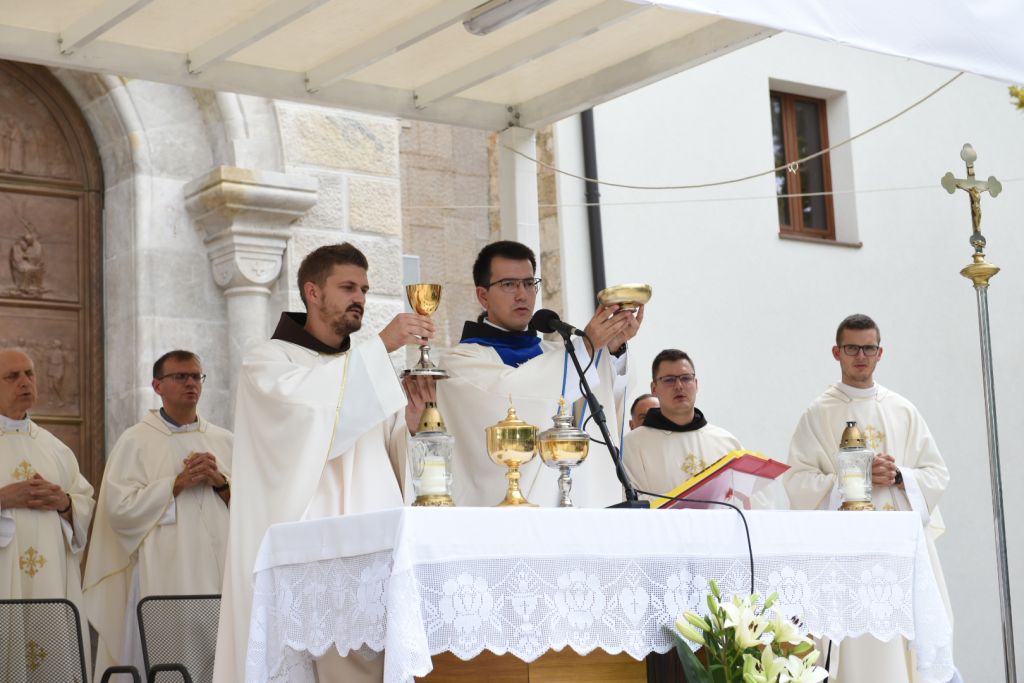 Mladu misu proslavio je naš fra Ivan Hrkać na vanjskom oltaru samostanske crkve na Širokom Brijegu. Nakon svečane procesije i roditeljskog blagoslova uz pozdravne riječi župnika fra Stipe Biške mladomisnik fra Ivan započeo je svoju Mladu misu. Prigodnu i temeljitu homiliju uputio je fra Jozo Hrkać, župni vikar s Posušja uz koncelebraciju dvadesetak svećenika. Riječ Božju navijestili su članovi mladomisnikove obitelji, te izrekli prigodnu molitvu vjernika i prinijeli darove za oltar.