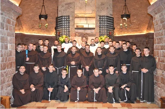 Okupivši se već 18. travnja na Trsatu, gdje smo prenoćili, nas trideset i trojica novaka s našim meštrima, ujutro rano smo krenuli autobusom za Asiz.