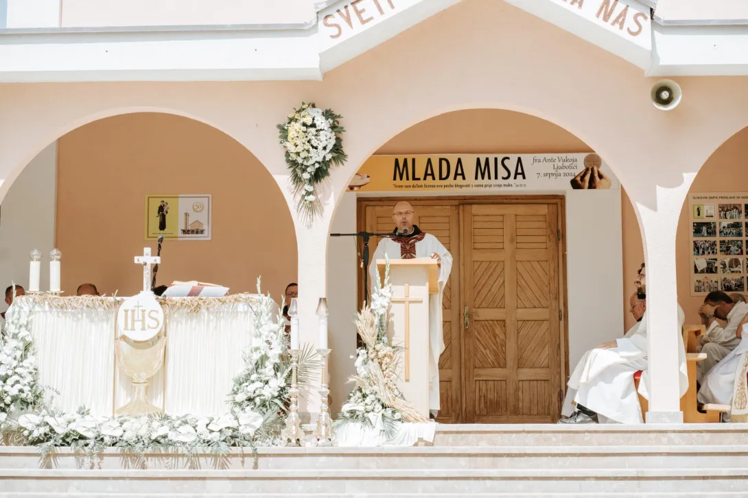 U nedjelju, 7. srpnja, u Ljubotićima je svoju mladu misu proslavio fra Ante Vukoja. Dvorište filijalne crkve, koje su župljani lijepo uredili i ukrasili, osobito časne sestre oko oltara, bilo je ispunjeno vjernicima. Procesija je krenula iz crkve te se uputila k oltaru. Koncelebriralo je 17 svećenika, među njima vikar provincije fra Miro Šego, gvardijan i župnik s Humca fra Dario Dodig, mjesni župnik i ujedno propovjednik fra Mario Knezović, mladomisnici te ostala braća iz provincije. Prije samog početka mise župnik je nakon ulazne pjesme najavio roditeljski blagoslov te su roditelji Slaven i Zdenka udijelili na sredini dvorišta svoj blagoslov mladomisniku nakon čega je započeto misno slavlje. Vrijedno je spomenuti zbor koji je predvođen zborašima sa Kočerina i iz Ljubotića imao i pjevača iz Mostara, Humca te Širokog, a njima su se pridružili i bogoslovi Hercegovačke provincije. Liturgijskim pjevanjem je ravnao gospodin Drago Soldo. Liturgijska čitanja su čitali brat od mladomisnika Jozo, te njegova sestra Anđela. Druga sestra Iva je pjevala psalam te čitala molitvu vjernika. Evanđelje je pročitao fra Franjo Markić. Mjesni župnik fra Mario Knezović je propovijedao koji je mladomisniku uputio dosta snažnih poruka. Kroz propovijed se sjetio i prvih susreta mladomisnika i sebe svjedočeći o pobožnosti koju je već tada kao dječak gajio Ante. Napomenuo je mladomisniku što ga čeka u životu, kakvu ljepotu i radost donosi svećeništvo. Također, upozorio ga je da bude spreman i na one teške trenutke života koje se javljaju u životu svakog svećenika kada “svećenik ostaje sam”, upozorivši ga na nedostatak empatije kojemu će svjedočiti, a nekada i “u samim institucijama i u raznim crkvenim formama”. Zato propovjednik savjetuje mladomisniku: “Kad se sve izmakne nasloni glavu na Isusovo srce, uhvati se za oltar, primi krunicu u ruke, baci se na koljena pred Presvetim i tada ćeš snažno osjetiti radost svećeništva i to je trenutak Preobraženja na Gori.” Vrijedno je ovdje spomenuti i geslo mladomisnika preuzeto iz Lukinog evanđelja, 22, 16: “Svom sam dušom čeznuo ovu pashu blagovati s vama prije svoje muke.”