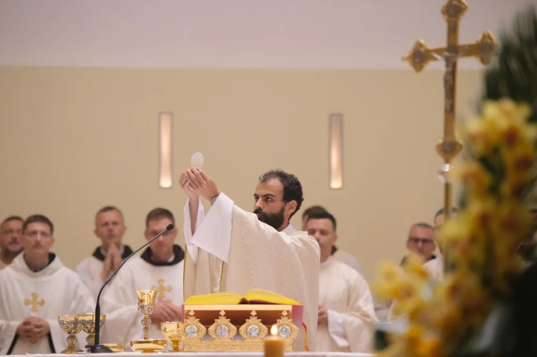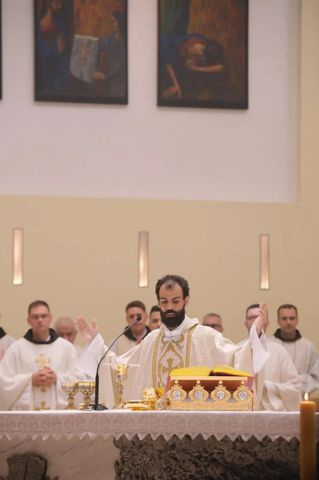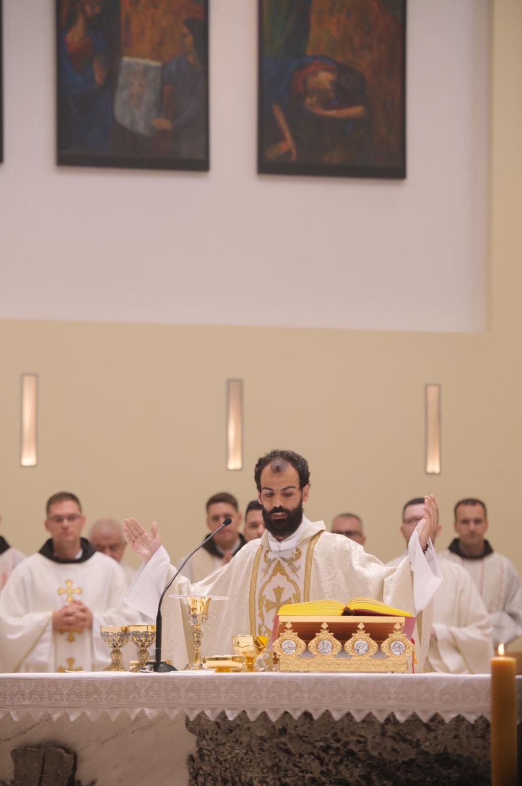 Euharistijsko slavlje započelo je ulaznom procesijom i roditeljskim blagoslovom. Fra Branimir je u svojoj propovijedi govorio o otajstvu euharistije i pozivu nasljedovanja Krista. Istaknuo je važnost i dar svećeništva u našem životu. Na kraju homilije propovjednik je čestitao mladomisniku na hrabrosti, zahvalio svima na podršci i pozvao na molitvu za duhovna zvanja.