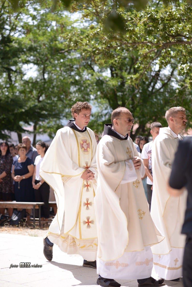 Euharistijsko slavlje započelo je procesijom. Fra Jozo Hrkać uputio prigodnu homiliju mladomisniku. Rekao je mladomisniku da jedino u osobnom odnosu s Bogom može jasno iščitati Božju volju za svoj život, ali isto tako mora druge uvesti u jednako osobni odnos s Bogom ako žele znati što Bog od njih traži. Uloga svećenika nije tu da govori drugima što trebaju činiti i što je za njih volja Božja. Uloga svećenika jest ljude uvoditi u zajedništvo s Bogom koji nam polako i strpljivo u otajstvu svoje ljubavi otkriva što je za naše posvećenje - što je volja Božja.