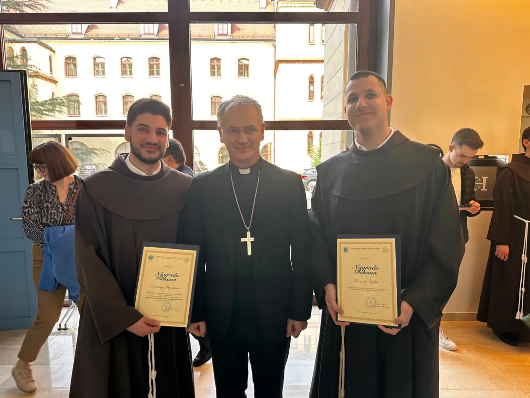U sklopu proslave dodijeljene su nagrade studentima za akademsku godinu 2024/25. Među nagrađenima su i dvojica naših bogoslova s 5. godine: fra Lucijan Zeljko i fra Antonio Ramljak.