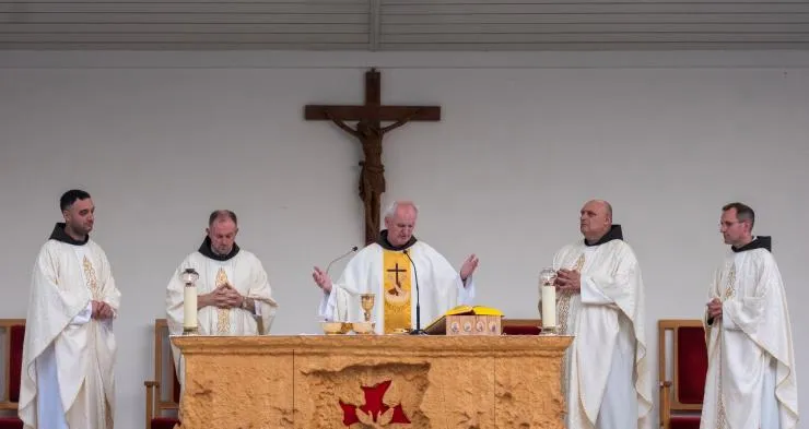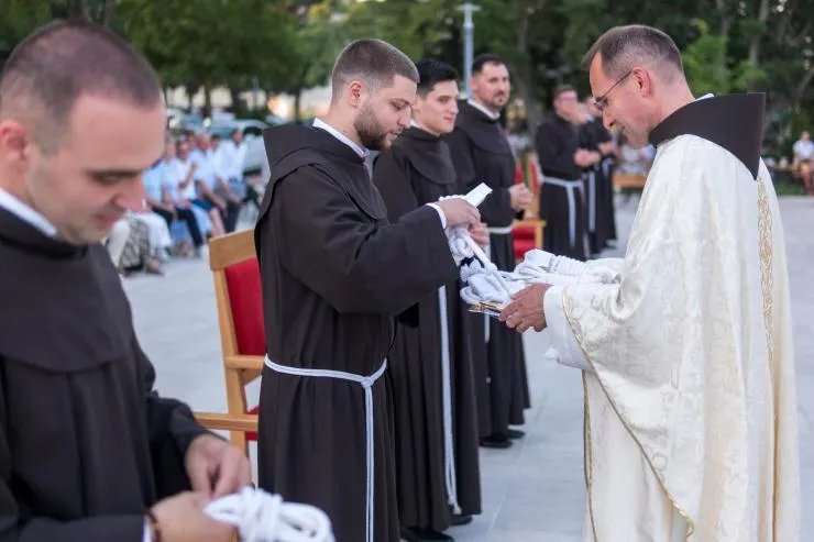 U nedjelju, 6. srpnja 2025. godine, na vanjskom oltaru ispred Samostana sv. Ante Padovanskoga na Humcu, pod večernjom svetom misom u 19 sati, osmorica novaka Hercegovačke franjevačke provincije položila su svoje prve privremene zavjete na godinu dana te time završili godinu novicijata.