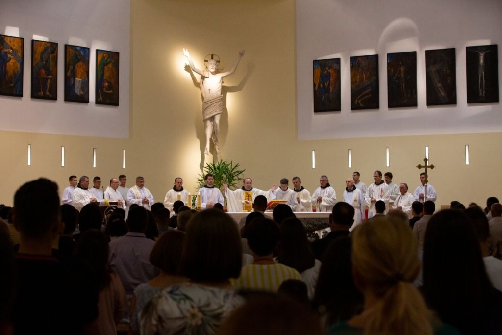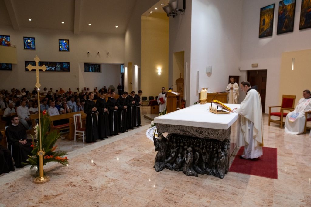 Misno slavlje predvodio je provincijal fra Miljenko Šteko, u koncelebraciji s meštrom novaka fra Stankom Mabićem, gvardijanom fra Darijem Dodigom, župnicima zavjetovanika i još dvadesetak svećenika. Uz prve privremene zavjete su pojedini bogoslovi produžili svoje privremene zavjete. Provincijal se obratio prigodnim riječima zavjetovanicima. Nakon propovijedi uslijedio je obred zavjetovanja.