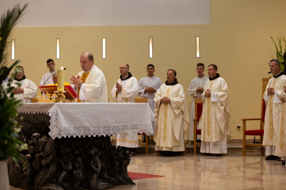 Misno slavlje predvodio je vikar provincije fra Iko Skoko, u koncelebraciji s meštrom novaka fra Stankom Mabićem, gvardijanom fra Darijem Dodigom, generalnim vizitatorom fra Mirom Relotom, župnicima zavjetovanika i još tridesetak svećenika. Fra Iko se obratio prigodnim riječima zavjetovanicima. Nakon propovijedi uslijedio je obred zavjetovanja.