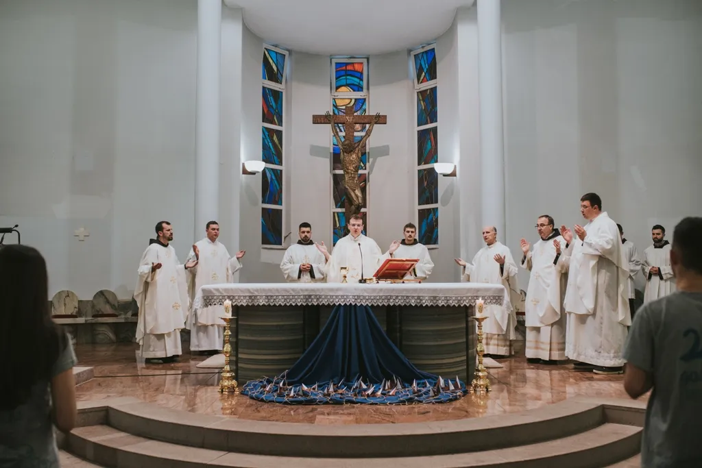Svečana misa Zahvalnica započela je u 18 sati. U njoj smo zahvalili Gospodinu na godinama blagoslova, vodstva i radosti koje nam je podario. Misno slavlje predslavio je sadašnji duhovnih asistent Frame Dubrava fra Josip Serđo Ćavar, uz još pet svećenika i dva đakona. Obećanja i obljetnicu svojim su dolaskom uveličale Frame iz Zagreba, okolice i hercegovačke frame – Mostar, Humac, Posušje i Široki Brijeg.