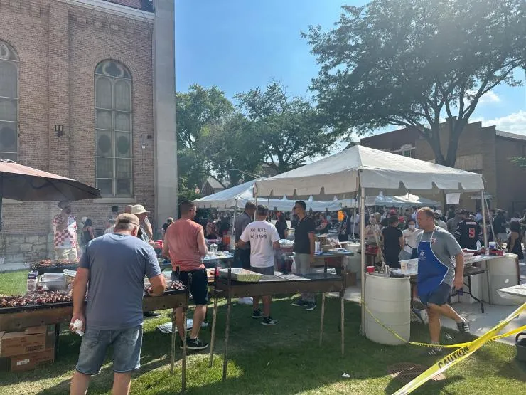 Poslije svete mise nastavljeno je druženje uz tradicionalna hrvatska jela: janjetinu i svinjetinu s ražnja, sarmu, rižot, ražnjiće, ćevape, fritule, i druge domaće slastice. Svečanom ručku za svećenike pridružio se i nadbiskup Chicaga kardinal Blaise Cupich, sam potomak hrvatskih iseljenika. Kasnije te večeri slavljena je još jedna sveta misa koju je predvodio župnik fra Antonio Musa i koja je okupila veliki broj vjernika. Večer je završena koncertom lokalnih hrvatskih glazbenih sastava te izvlačenje bogate tombole.