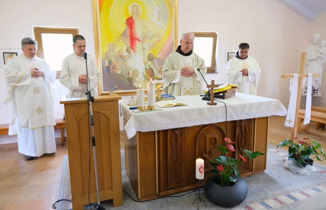 Nakon predavanja bila je mogućnosti za sakrament pomirenja. Potom je provincijal fra Jozo Grbeš, u zajedništvu sa svom braćom, predslavio svetu misu, a propovijedao je fra Ante. Liturgijsko pjevanje animirali su novaci s Humca. Na završetku misnog slavlja ravnatelj Ustanove Majčino selo fra Ivan Sesar zahvalio je braći na dolasku, duhovnoj i materijalnoj pomoći Ustanovi te ih pozvao da nastave susret bratskim druženjem i objedom.