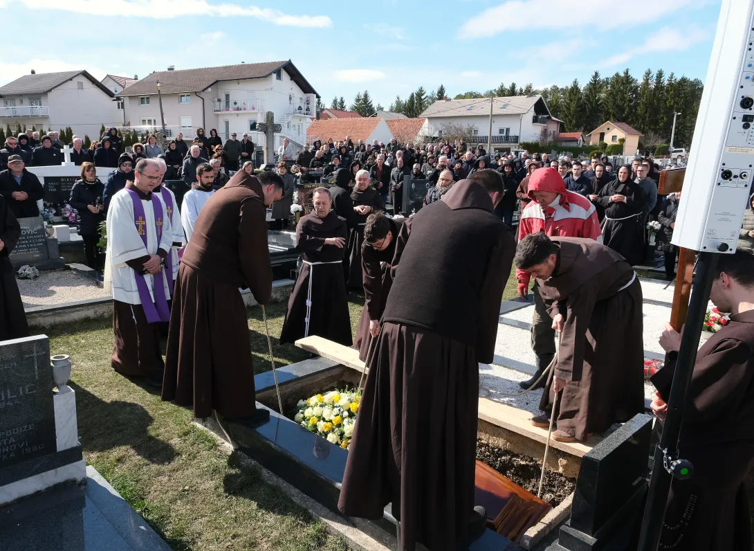 Nakon svete mise slavljeni su sprovodni obredi te je pokojnikovo tijelo položeno u fratarsku grobnicu na groblju Karaula u Tomislavgradu.