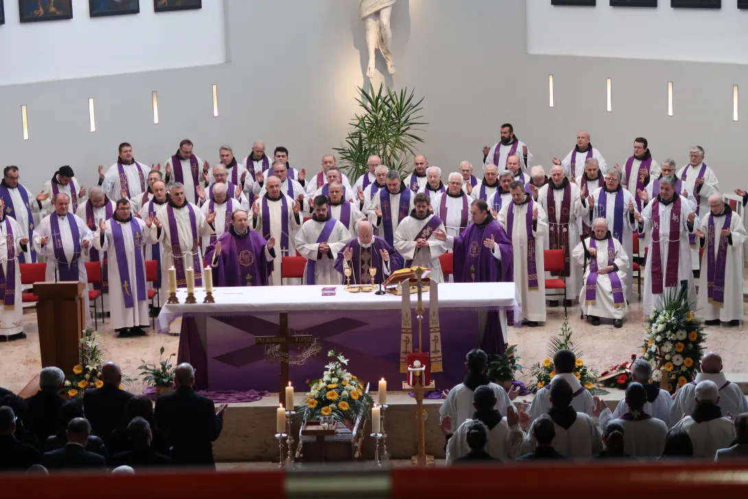 Sv. misa zadušnica slavila se u samostanskoj crkvi na Humcu, u subotu, 17. veljače 2018., u 15 sati. Svetu misu je predvodio biskup Ratko Perić, a propovijed je izrekao provincijal fra Miljenko Šteko. Suslavilo je više od 60 svećenika. Na završetku sv. mise je gvardijan fra Dario Dodig izložio pokojnikov životopis i izrekao zahvale. Sprovodne obrede i ukop na Novom groblju na Humcu predvodio je provincijal fra Miljenko.