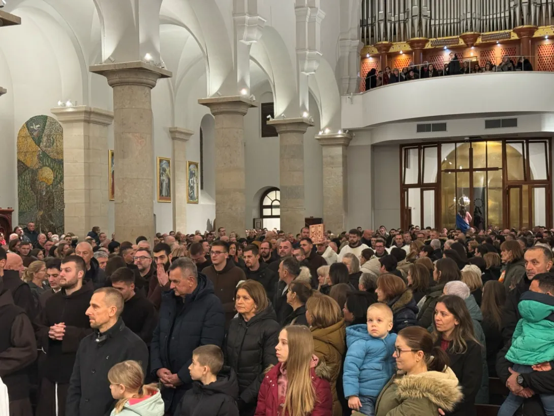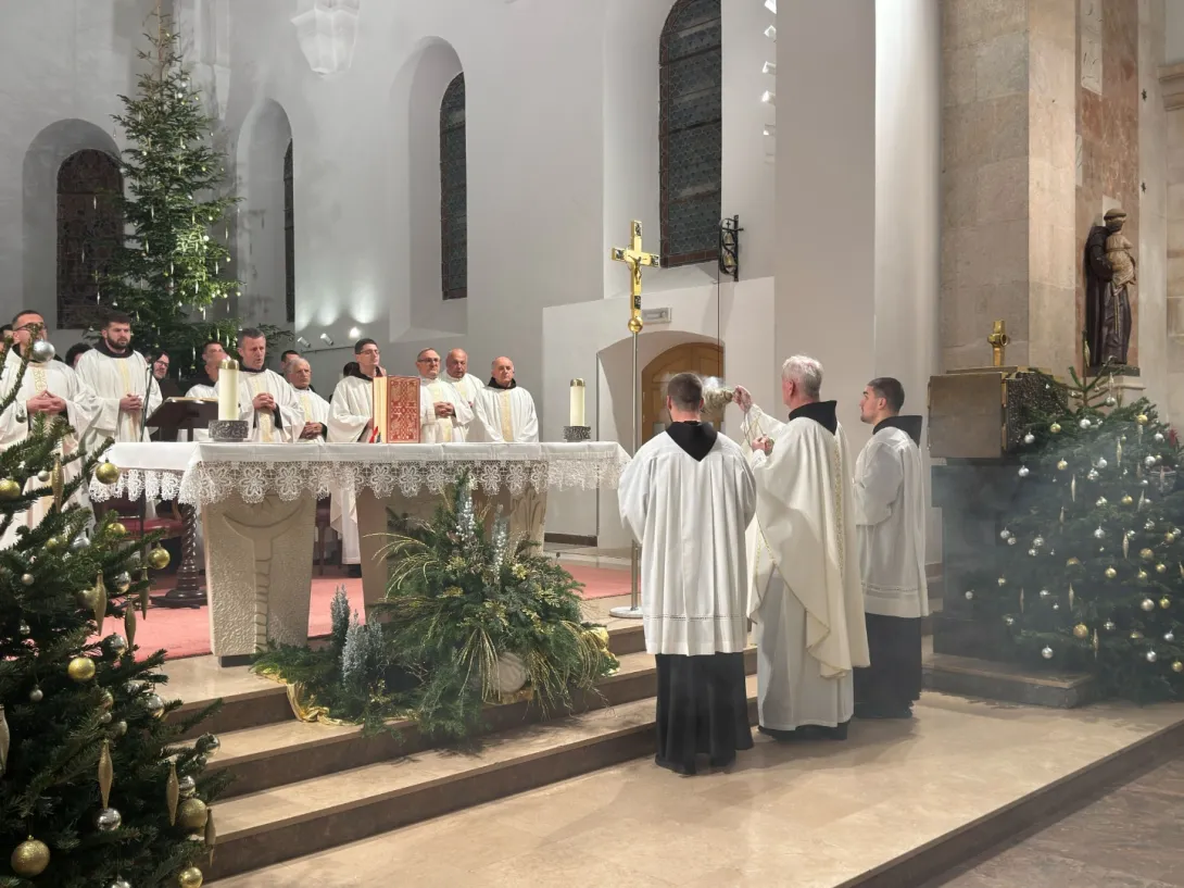 Nakon predavanja uslijedila je sveta misa zahvalnica u samostanskoj crkvi koju je predslavio fra Jozo Grbeš. Fra Jozo je u propovjedi podsjetio na važnost zahvaljivanja u svakodnevici te koliko je ona ključna za istinsku radost života. Provincijal je istaknuo odnos prošlosti i budućnosti i kako samo pomireni sa onim što je prošlo možemo slobodni dočekati ono što dolazi. Odmah nakon svete mise, zajedno s narodom u crkvi, bilo je slavlje svečane Večernje molitve časoslova koju su predmolili naši bogoslovi.