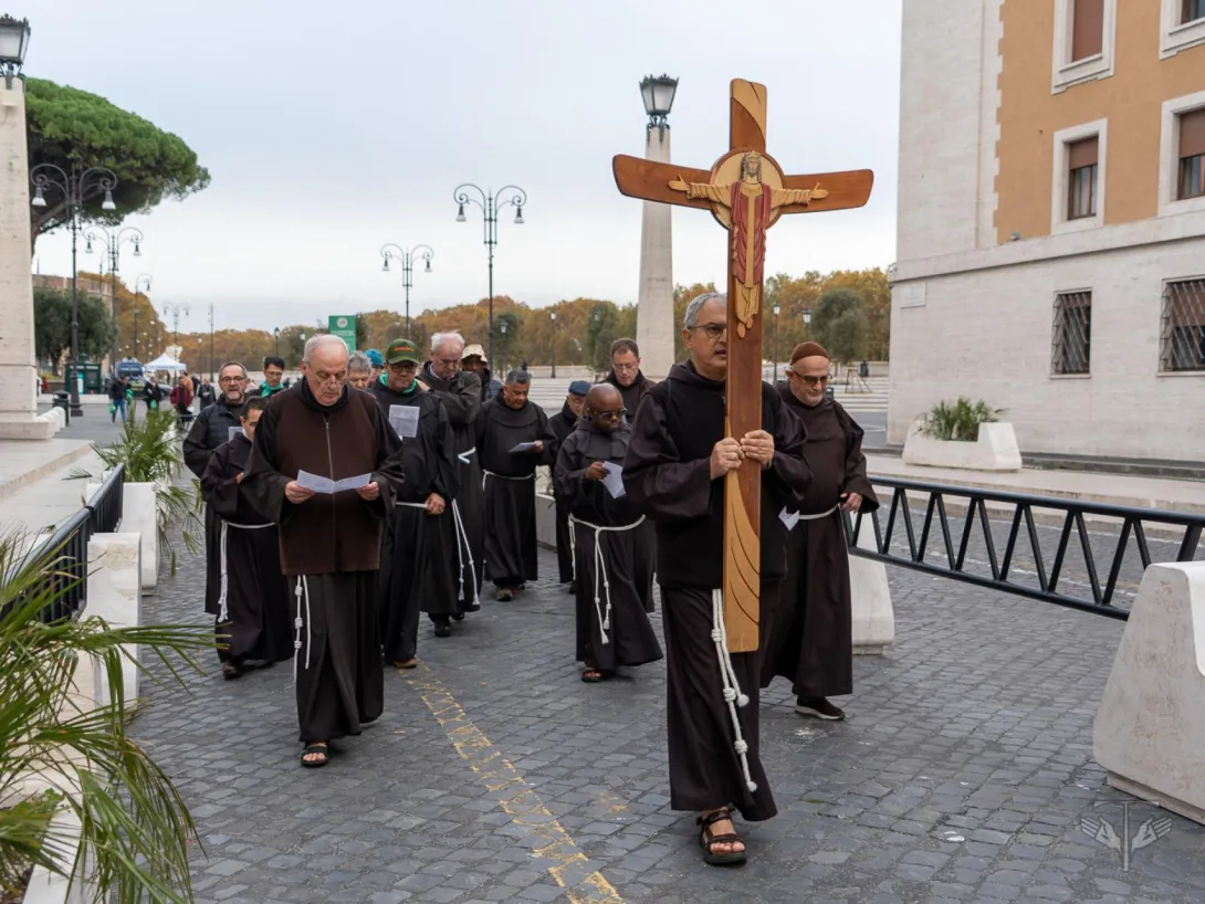 U petak su sudionici hodočastili do Svetih vrata bazilike sv. Petra. Tijekom večernjeg euharistijskog slavlja, u spomen na Marijino Prikazanje u Hramu, fra Francesco Piloni razmišljao je o potpunom darivanju sebe kao odgovoru na Božji poziv. „Pozvani smo biti Hram. Oponašajući Mariju, pozvani smo pripremiti se, učiniti svoje živote gostoljubivim domom za Krista koji dolazi”, istaknuo je. „Pozvani smo razaznati gdje Božji život pulsira u našem Redu danas i tamo uložiti svoju energiju, svoju hrabrost, svoju kreativnost. Bog nije od mrtvih, nego od živih“, rekao je u završnoj propovijedi fra Massimo.