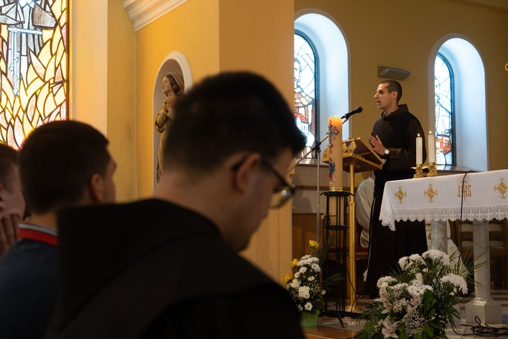 Po završetku svete mise uslijedila su svjedočanstva, prvi se predstavio postulant Danijel iz župe Čerin, koji je predstavio plan i program postulature te svoj doživljaj prvih koraka u samostanu. Poslije Danijela svjedočio je postulant Ante Dodig, domaćin, župljanin župe Seonica. Prvi dio programa završio je prigodnom pjesmom zajedničkog zbora uz pratnju gitare. U drugom dijelu novak fra Lucijan Zeljko predstavio je život novicijata te istaknuo bitne odrednice života redovnika i života u samostanu općenito. Nakon toga je uslijedilo svjedočanstvo fra Ante Kelave, koji je svjedočio o svome zanimljivom duhovnom putu do svećeništva, kao i o odluci za redovništvo, točnije franjevaštvo. Ispunjene crkvene klupe i mnoštvo vjernika u dvorištu pozorno je slušalo i upijalo riječi mladih kandidata. Utječući se zagovoru Dobrog Pastira i naše nebeske Majke molili su da upućene riječi padnu na plodno tlo, u srca mladića i djevojaka.