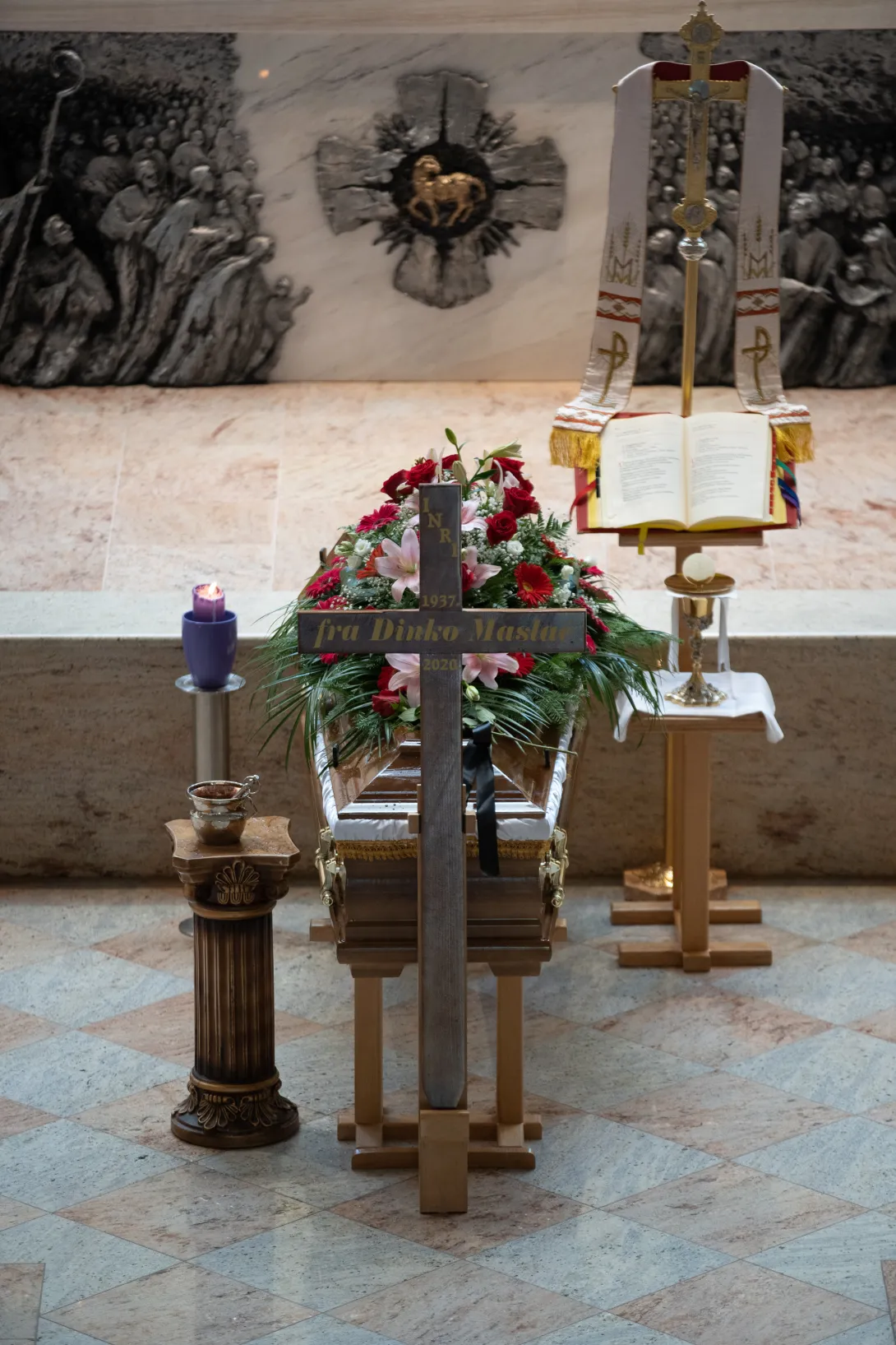 Sv. misa zadušnica slavila se u samostanskoj crkvi sv. Ante na Humcu, u ponedjeljak 17. kolovoza 2020. u 17,00 sati. Misno slavlje predvodio je provincijal fra Miljenko Šteko. Koncelebrirali su generalni vikar don Željko Majić, gvardijan fra Dario Dodig i još pedesetak svećenika. Homiliju je izrekao provincijal fra Miljenko. Svoju sućut na kraju izrekao je don Željko Majić. Sprovodne obrede i ukop na Novom groblju na Humcu predvodio je provincijal fra Miljenko.